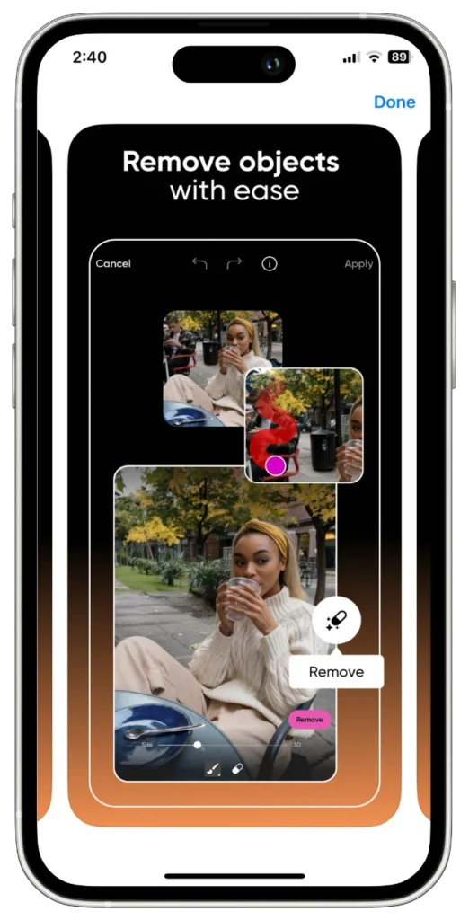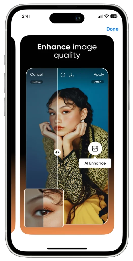Experience ultra-smooth photo and video editing optimized for touch gestures. Smoothly zoom, swipe, and edit on the iPhone or iPad screen.