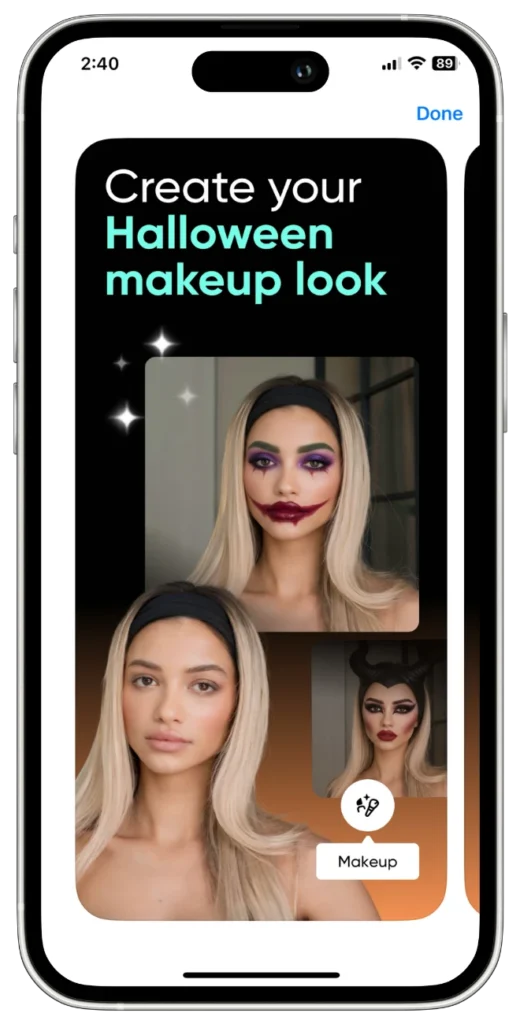 Being a woman, this is the most convenient feature for me. Lol!! 🤭 You can just capture a selfie without even washing your face, and Picsart will make you look like a model with very casual makeup, including all the necessary things you need. I.e, blush, lipstick, contours, liner, lashes, and everything we can expect.