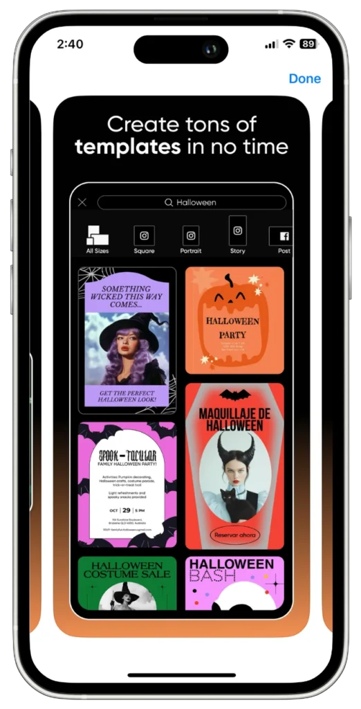 Best used for: Users creating posts, stories, banners or marketing visuals on mobile.